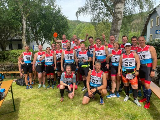 Vaak geldt de regel dat je maximaal 10 meter van je partner verwijderd mag zijn. Veel teams kiezen ervoor om met een elastisch koord aan elkaar vast te zitten. Dat klinkt misschien vreemd, maar het helpt enorm: je kunt elkaar voorttrekken tijdens het zwemmen, ondersteunen op technische stukken en samen ben je sterker dan alleen.